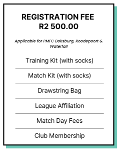 Pitso Mosimane Football Club (PMFC) is a community-based youth football club offering structured and competitive training for boys and girls aged 6 to 15. Each club competes in SAFA-accredited leagues and provides professional, age-appropriate coaching three times per week in Boksburg, Mamelodi and Roodepoort.
